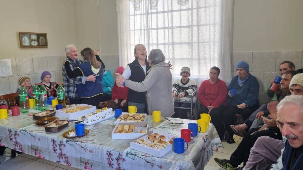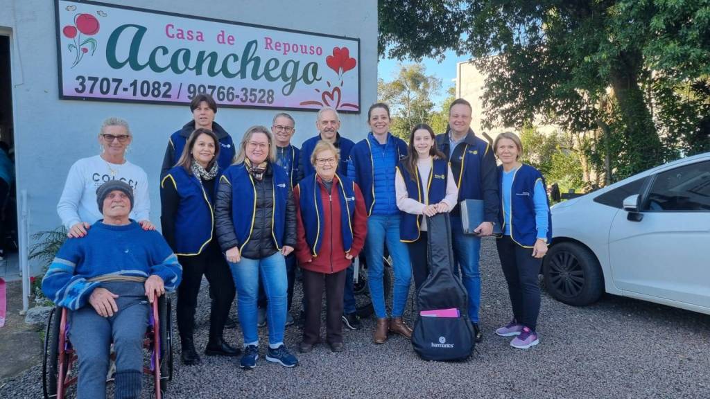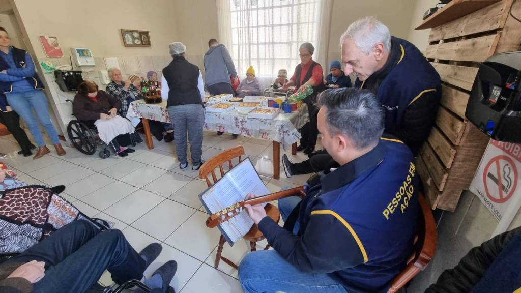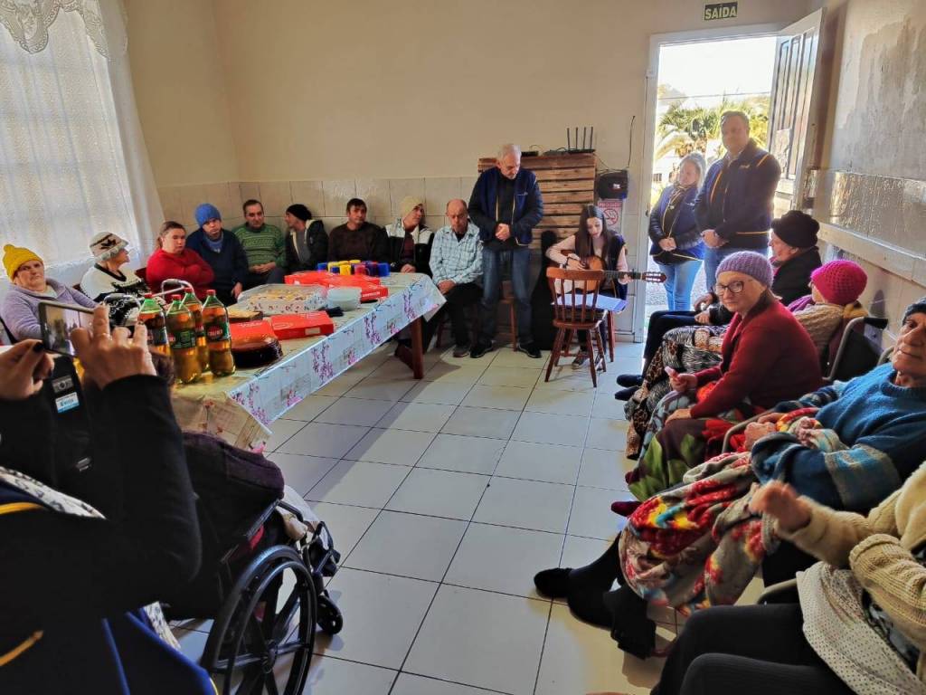Muito gratificante a celebração do dia do Vovô na Casa de Repouso Aconchego. Foi um momento muito especial e emocionante. Os vovôs e as vovós se emocionaram a ponto de escorrerem lágrimas em seus rostos. o companheiro Ivan Eidelwein e sua filha Luiza deram um show interpretando músicas antigas que traziam boas lembranças aos avós.