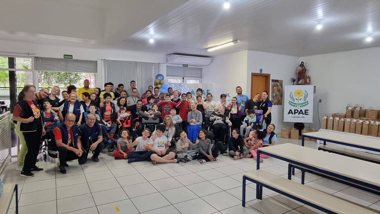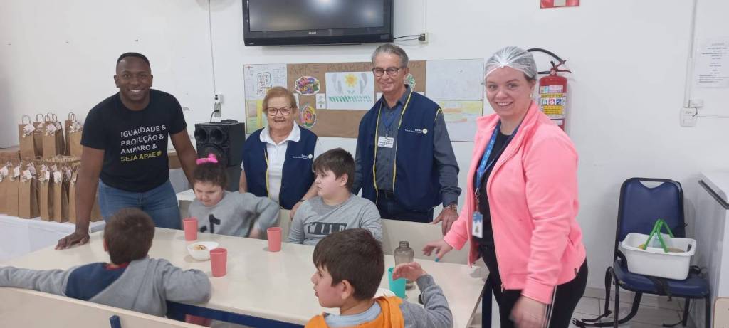 Na sexta-feira dia 20 de outubro nosso clube esteve nos turnos da manha e da tarde na Associação de Pais e Amigos dos Excepcionais de Lajeado -APAE, para oferecer um lanche composto de cachorro quente, refrigerante e pacotinhos de bala aos 120 alunos da Escola de Educação Especial Bem Me Quer.