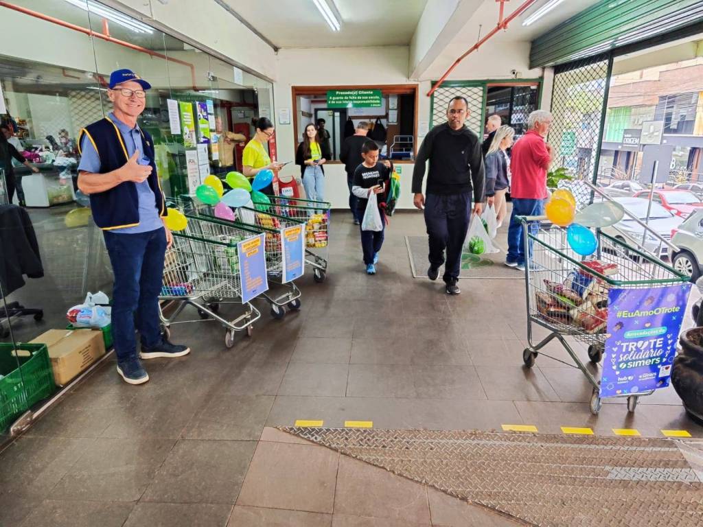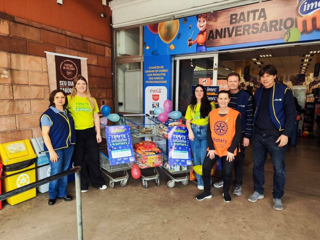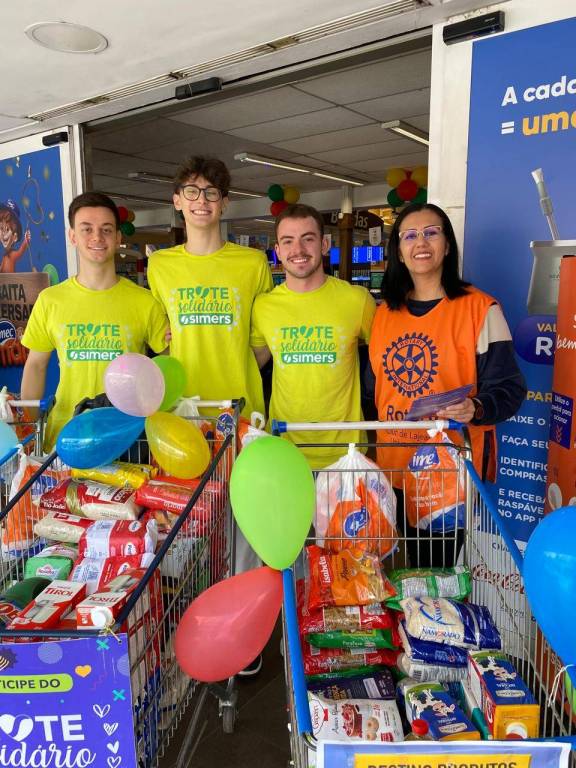 O Rotary Club Lajeado-Engenho e Lajeado-Universitário, em parceria com o Banco de Alimentos RS, o Simers e os calouros do Curso de Medicina da Univates realizaram no último sábado, 14 de setembro, mais uma edição do “trote solidário”. A ação foi realizada de maneira simultânea em quatro supermercados da cidade de Lajeado, onde foram arrecadados 1.756 kg de alimentos, os quais serão destinados para instituições que realizam ações sociais com públicos de longa permanência. O presidente Dário Graff agradece a colaboração de todos os companheiros.
