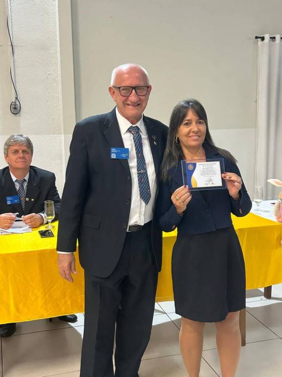 A noite também foi marcada por homenagens. Tânia Graff recebeu certificado de fundadora do Rotary Club.