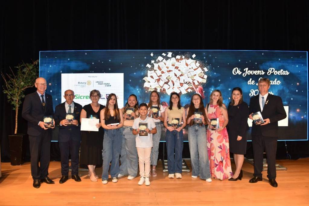 🏅 O ano de 2025 marca um momento especial na história cultural de nossa cidade: a celebração dos 30 anos do projeto Os Jovens Poetas de Lajeado. A iniciativa surgiu em 1996, quando o rotariano Reni Nunes Machado, inspirado pelo interesse de suas filhas pela poesia, sugeriu ao clube a criação de um livro que reunisse produções de alunos das escolas de Lajeado. Naquele período, a presidente Ana Cecília Togni acolheu a proposta e a apresentou ao clube, que prontamente abraçou a ideia e deu vida ao projeto. Desde então, este projeto vem consolidando-se como um espaço de valorização da criatividade, da expressão e da sensibilidade dos estudantes das escolas do município de Lajeado.